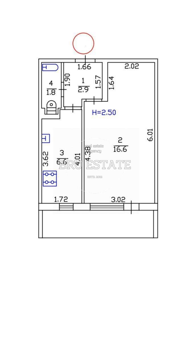 Площа кухні - 6.6 м2.