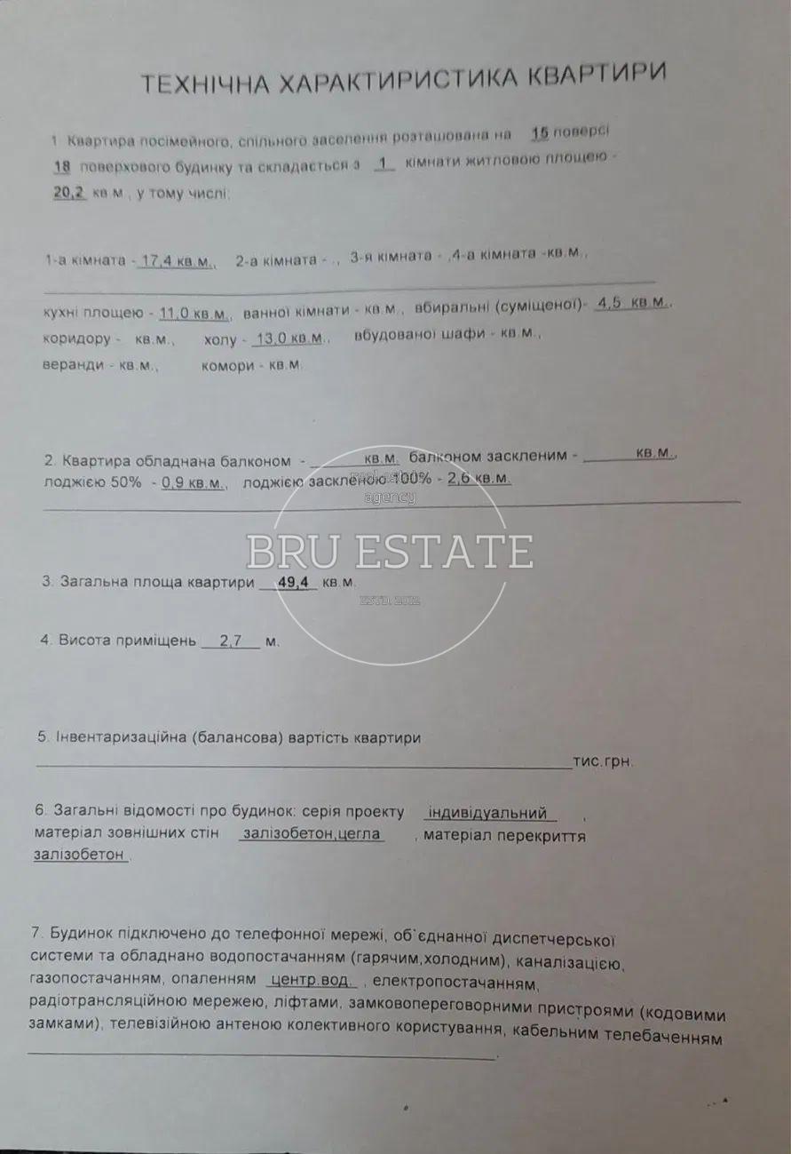 Продаж квартири від власника | вул. Закревського, 42А Продається квартира в новобудові за адресою вул. Закревського, 42А, 15-й поверх. Загальна площа — 49,4 м². На етапі забудови була додатково встановлена стінка, тому квартира фактично двокімнатна. Планування зручне, дозволяє реалізувати будь-які дизайнерські рішення. Квартира після забудовника, без ремонту, повністю пуста — ідеальний варіант, щоб зробити все «під себе», без необхідності переробляти чужі рішення. Непогана шумоізоляція в будинку Усі комунікації поруч Розвинена інфраструктура: парк, озеро, поліклініка, аптеки, лабораторії, магазини — все в пішій доступності Без ріелторів.